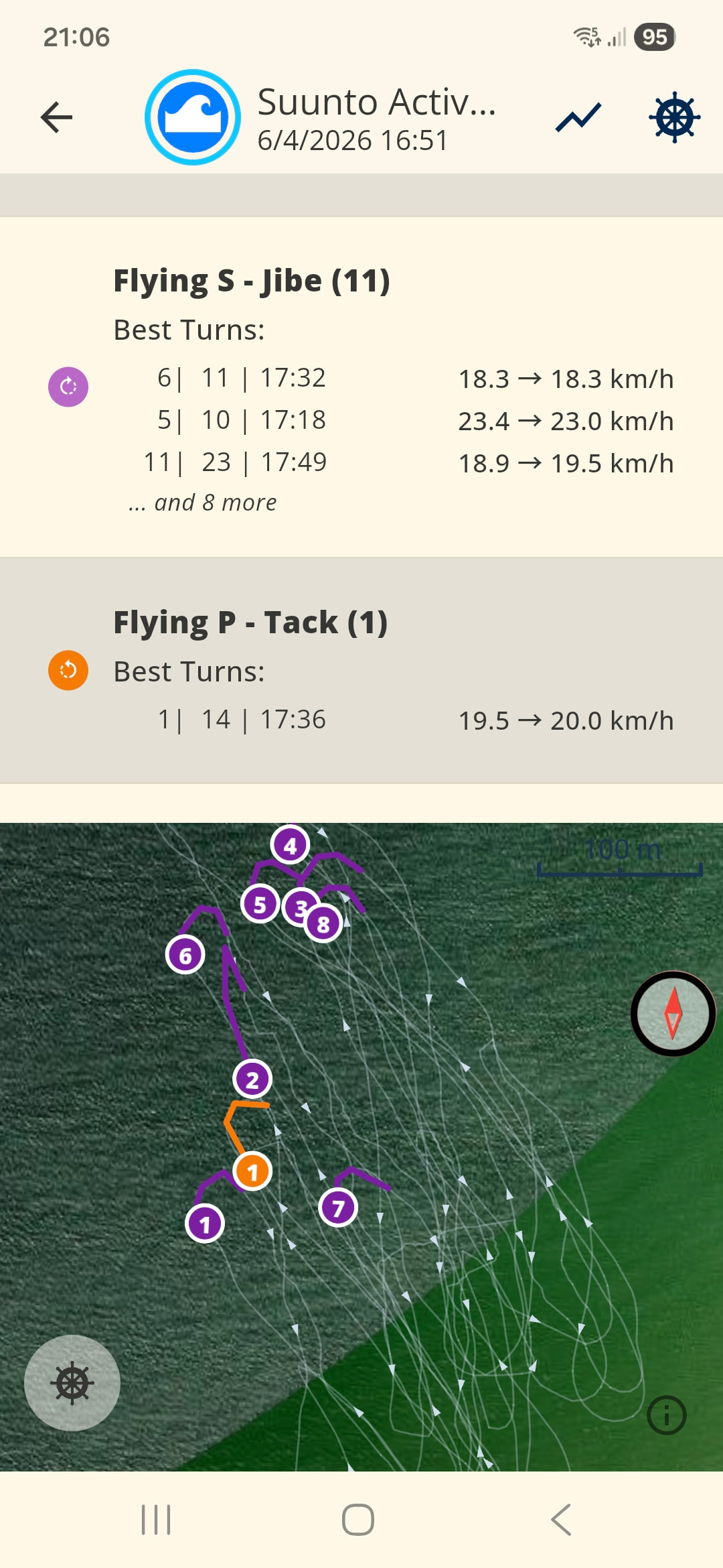 La détection des empannages/tangages repose sur la combinaison de la direction du vent et de votre changement de cap — si la direction du vent est légèrement faussée, l’algorithme peut mal classer la manœuvre.