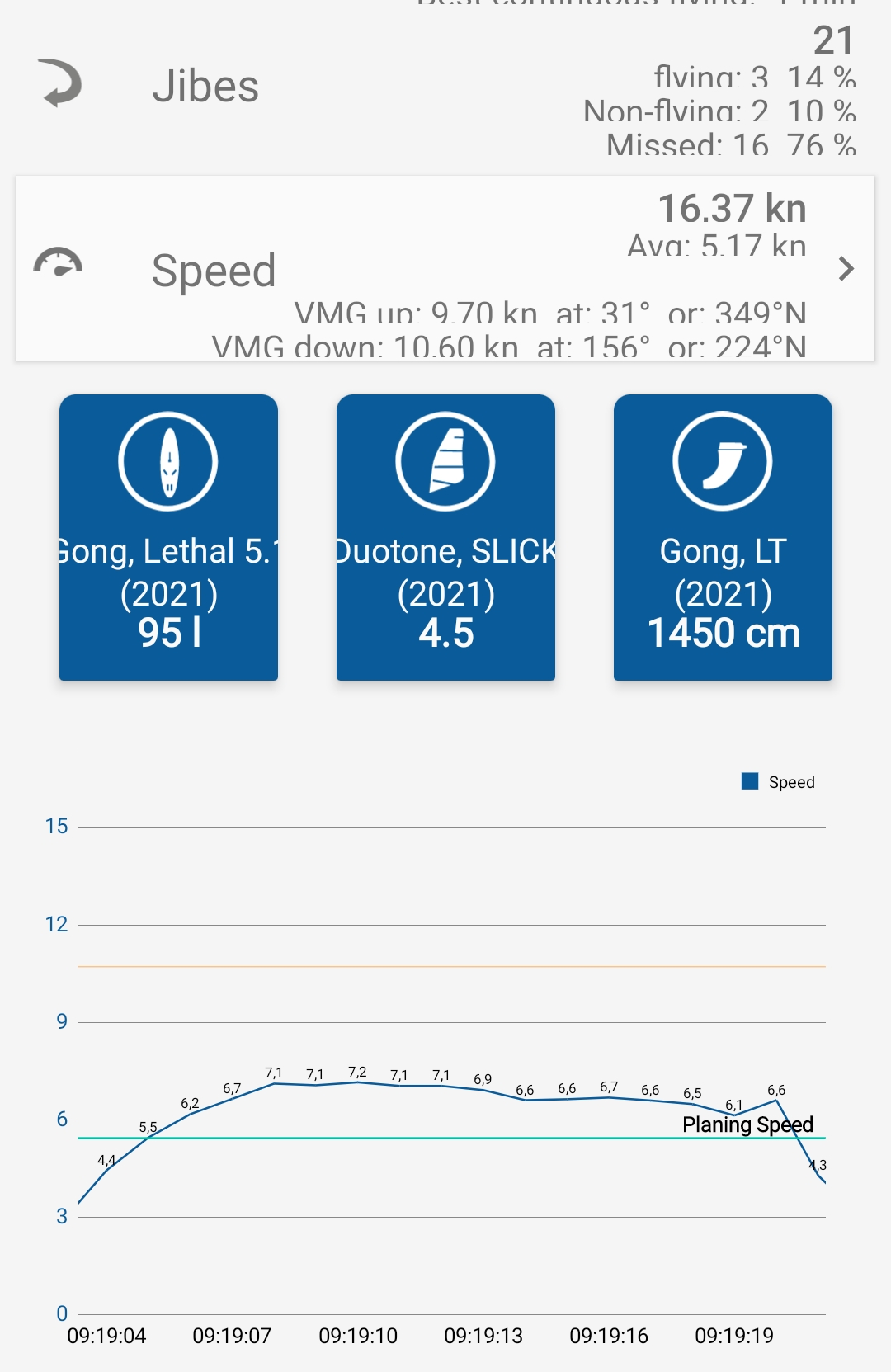 then it starts with blue colors, depending on the discipline planing/foiling speed.